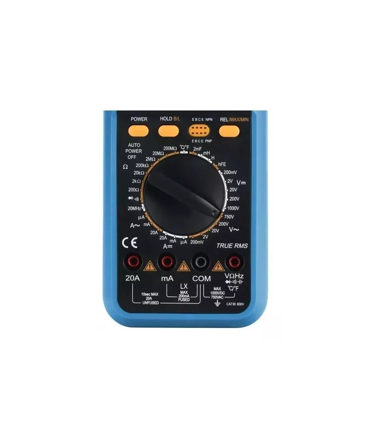 Também permite medições de teste de diodo, continuidade e hFE de transistor;