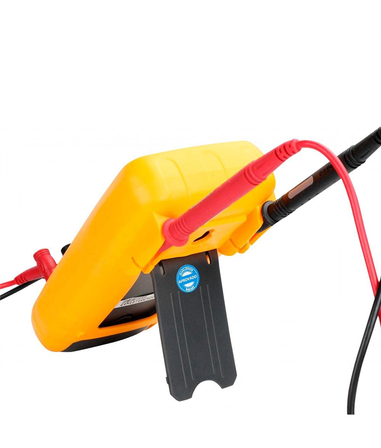 Em conformidade com a IEC 61010-1, categoria de sobretensão CAT. IV 600V, com Dupla Isolação e Holster protetor, este multímetro digital garante segurança ao realizar medições em sistemas elétricos de baixa tensão e possui recursos que atendem tanto as necessidades básicas quanto as avançadas do usuário, como medidas de tensão DC e AC, corrente DC e AC, resistência, capacitância, frequência, Duty Cycle, temperatura e testes de diodo e continuidade.