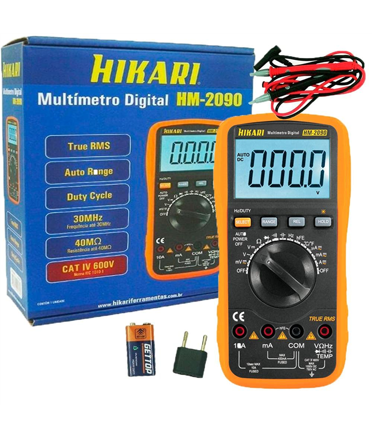 O Multímetro Digital Cat. IV 600V HM-2090 pode ser utilizado para medições em circuitos eletrônicos, circuitos de ramificação, linhas de baixa tensão e na indústria.