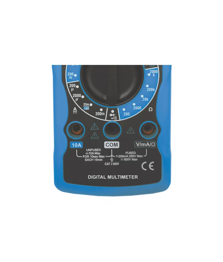 Instrumento digital portátil da linha hobby. Display LCD de 3 ½ dígitos, que realiza medidas de tensão AC e DC, corrente DC, resistência, continuidade, teste de diodo e transistor hFE.