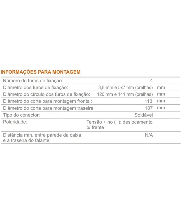 Tipo do Alto-Falante: Triaxial (Woofer Médio Tweeter)