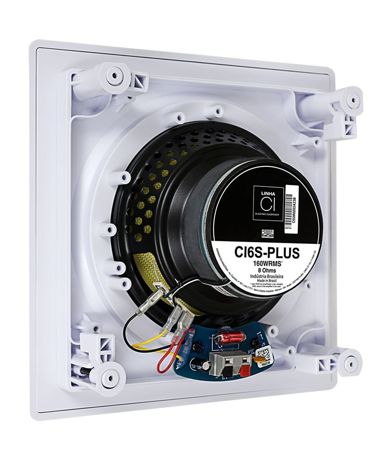 02 UNIDADES (PAR) JBL ARANDELA - CI6S PLUS 160W RMS - TELA MAGNÉTICA Arandela Quadrada linha CI PLUS CAIXA DE SOM JBL CI6S PLUS ARANDELA QUADRADA 160W RMS ? A nova linha Ci Plus, foi desenhada para atender o mercado especializado de home theater e o mercado de instalação de som ambiente, com formatos quadrados e retangulares, gabinetes angulados ou regulares, borda ultra fina e telas magnéticas de alumínio à prova de oxidações, para atender a demanda dos arquitetos. DIFERENCIAIS ? Excelente performance sonora na categoria. ? Instalação super fácil. ? Design moderno e clean para atender aos mais diversos tipos de ambientes e decorações. ? Formatos quadrados e angulados para atender a demanda dos arquitetos. O QUE MUDA NA NOVA LINHA? ? Novo crossover - melhor resposta de frequencias, trazendo graves mais encorpados, médios mais nítidos e agudos com maior extensão. ? Maior potência admitida em todos os novos modelos, proporcionando a utilização de amplificadores ou receivers mais potentes. ? Telas com fixação magnética para facilitar a instalação. Basta aproximar da caixa que a tela já se encaixa. ESPACIFICAÇÕES TÉCNICAS ? Potência: 160W RMS ? Resposta de Frequência: 53Hz - 20kHZ ? Sensibilidade: 92 dB ? Impedância: 8 Ohms Alto Falantes: ? Woofer: Cone de Kevlar 6,5"""""""" ? Mid-Range: n/a ? Tweeter: Domo de seda de 20mm ? Tipo da tela: Magnética sem borda ? Formato: Quadrada Dimensões do produto: ? Dimensões de corte (A x L x C): 9,3 x 20,6 x 20,6 cm ? Dimensões da tela: (A x L): 24,2 x 24,2 cm ? Profundidade: 9,3 cm ? Peso: 1,7 Kg ITENS INCLUSOS ? 01 Arandela CI6S Plus 160W RMS ? 01 manual do proprietário