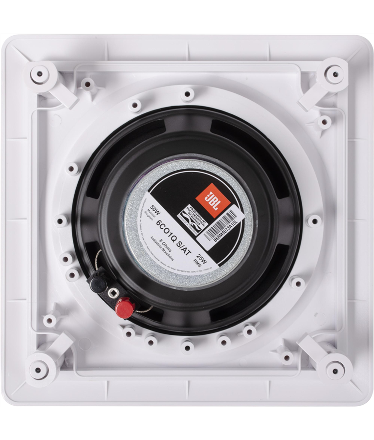 PAR CAIXA ARANDELA JBL 6CO1Q Caixa para som ambiente para teto Linha de arandelas ambiental é a solução prática para sonorização distribuída em ambientes, como: hotéis, restaurantes, aeroportos, shopping centers, escritórios, consultórios e salas de recepção. Oferece perfeita integração com o ambiente através de design otimizado para rápida instalação embutida em forros e paredes. Moldura em plástico e tela frontal em alumínio resistente à oxidação. Especificações ? Modelo: 6CO1Q Sem Auto Trafo ? Tipo de alto-falante: Coaxial 6"""" ? Potência RMS (W): 25 (50W RMS o Par) ? Potência Prog. Musical (W): 50 (100W Max o par) ? Impedância: 8 Ohms ? SPL 1W@1m (dB): 90 ? Resp. Freq. @ - 10 dB (Hz): 55 - 20k ? Peso líquido (g): 1036 ? Diâmetro do furo no teto (mm): 205 ? Cobertura angular: 60º ? Cor: Branca Itens Inclusos ? Manual ? Certificado de Garantia