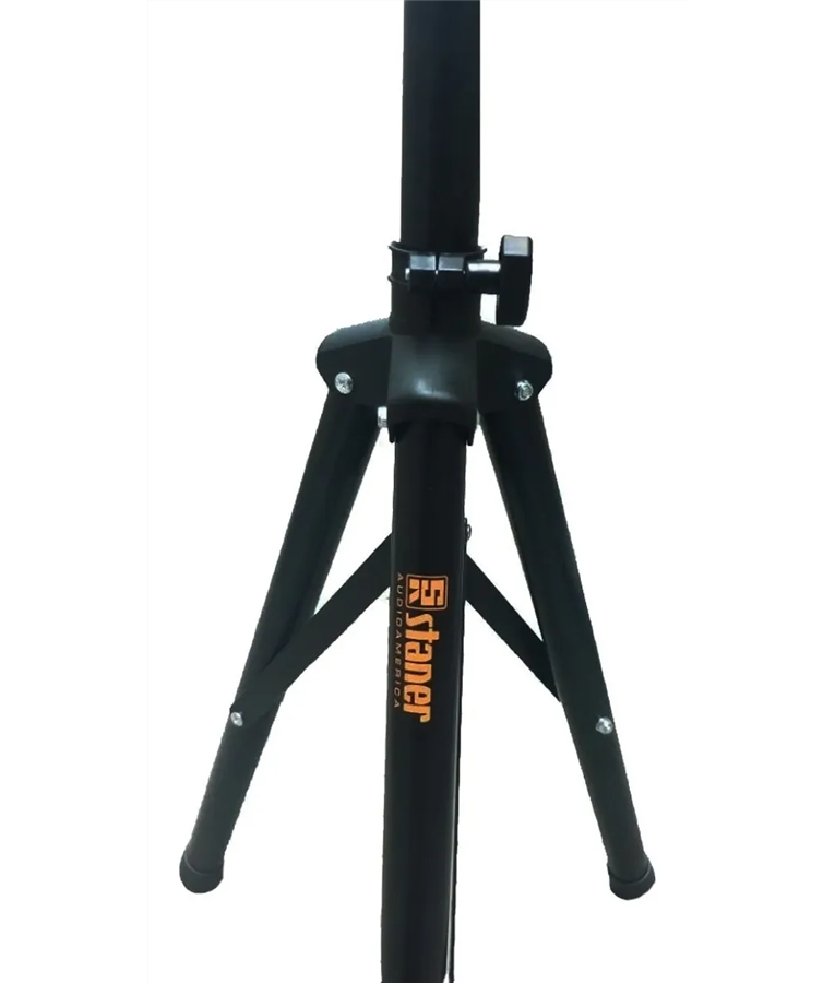 Suporte P/caixa de Som Tripé Staner Um dos melhores suportes do mercado. Pequeno, leve e super resistente. Suporte original Staner. Medidas da Embalagem Fechada: 12 x 12 x 71; 2,10 kg Altura Mínima: 0,90cm Altura Máxima: 1,50m Tripés reforçados, construídos com tubos de 1 ½?, extremamente resistente e leve. Comporta caixas de até 50kg, com estágios de altura c/ trava que vai de 0,92m a 1,61m. Eles ocupam pouco espaço e podem ser levados até no porta malas do caro. - Marca: Staner - Modelo: Extensível - Construído com tubos de 1 ½?, extremamente resistente e leve - 3 Furos disponíveis para inserção do pino de segurança - Geometria das pernas permite ângulo de 120° - Abertura e fechamento das pernas e hastes através de luvas deslizantes - Capacidade: 50 kgs - Regulagem de abertura dos pés - Trava de segurança - Cor: Preto
