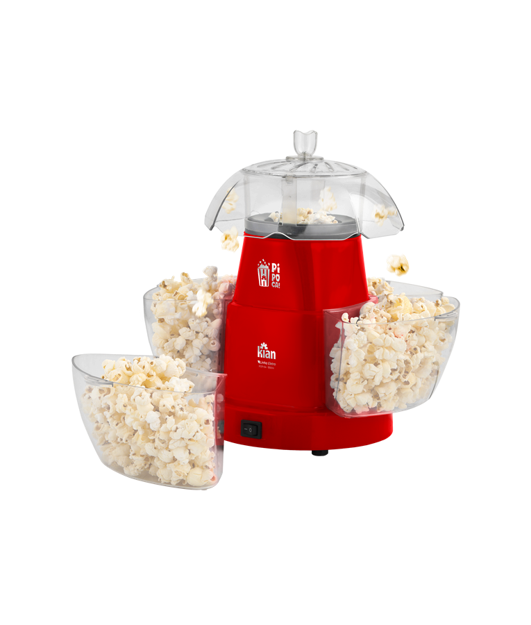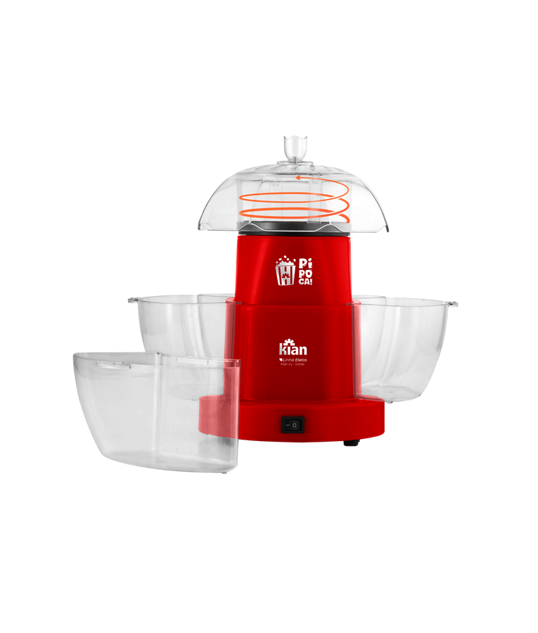 Pipoqueira Elétrica Kian POP-04 Sistema de 4 Saídas, Tampa Multifuncional, Praticidade e Inovação, Vermelha, 220V