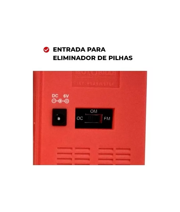 Tomada para Eliminador de Pilhas : Na parte traseira possui uma tomada para eliminador de pilhas. Conecte o plug do Eliminador de Pilhas de 6 VDC e 250 mA.