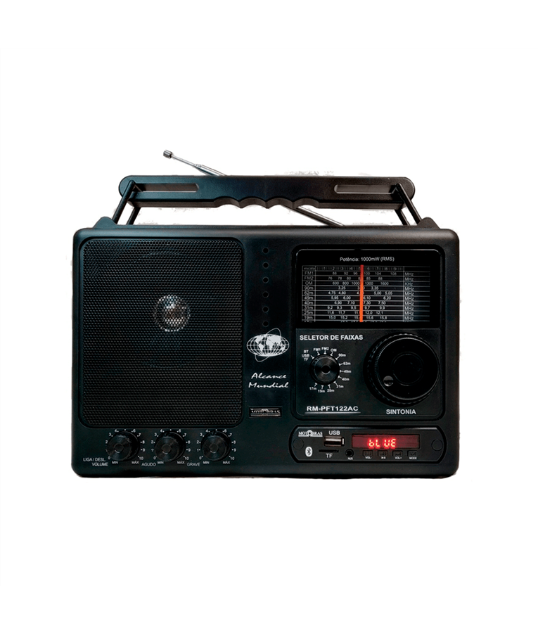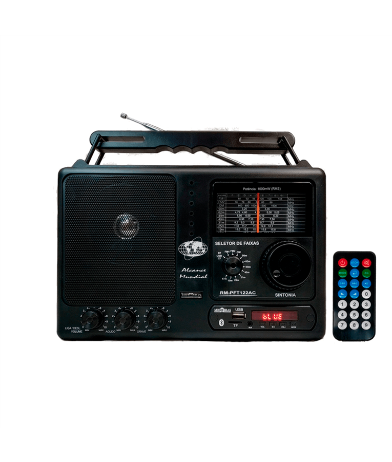 RM-PFT122AC - Rádio Portátil 12 Faixas (FM1+FM2+OM+8 OC) com Bluetooth / entrada USB / TF Card (micro SD) / Controle Remoto / Entrada Auxiliar e Display.