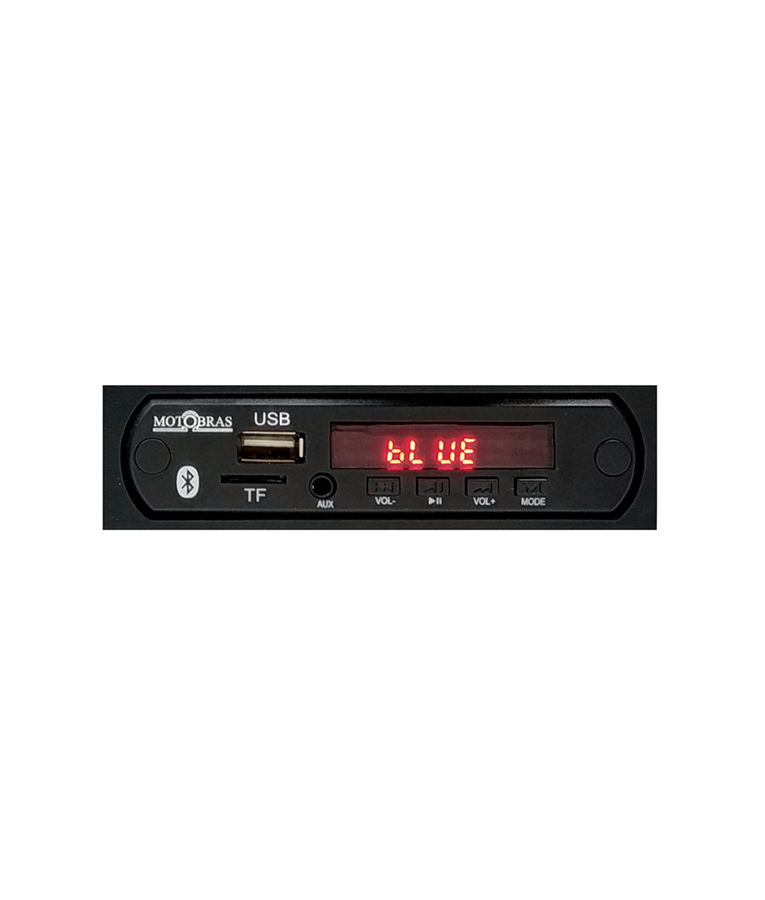 Controle Remoto: Controle das funções do Bluetooth, entrada TF (cartão micro SD), entrada USB e entrada auxiliar. Obs: Não controla as funções do rádio.