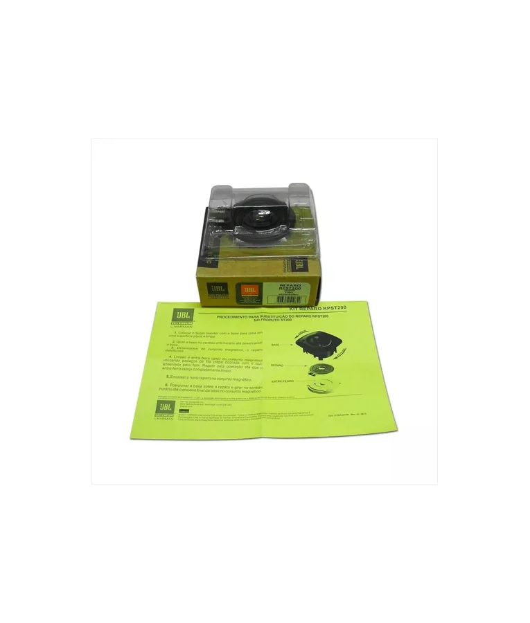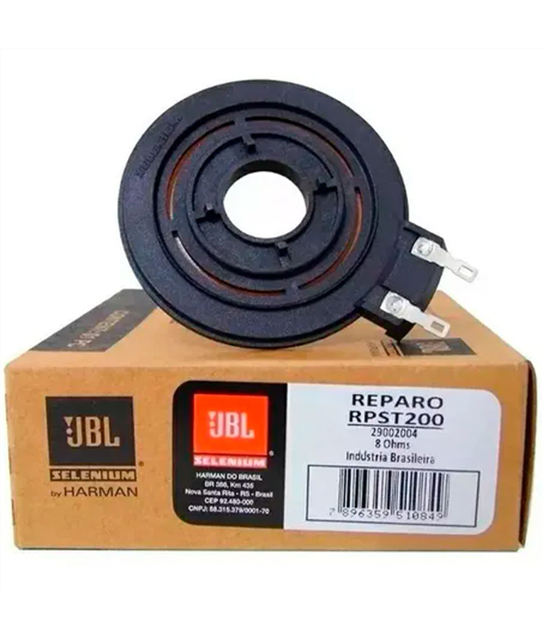 O Reparo Super Tweeter JBL RPST200 para ST200 é a manutenção perfeita para reparar seu super tweeter danificado ou queimado. Para manter o mesmo desempenho do seu DRIVER JBL SELENIUM utilize sempre reparos originais, os únicos que oferecem a mesma qualidade e servem perfeitamente no seu driver de corneta. Por utilizarem sistema de troca rápida, a instalação do reparo dos drivers JBL SELENIUM é muito fácil de ser executar, além de exigir um mínimo de ferramentas. A Selenium oferece reparos individuais para seus drives de fácil reposição, compatível apenas com o modelo St200. O Reparo para Super Tweeter ST200 é a melhor opção para manutenção dos seus tweeters que foram danificados pelo uso excessivo, ou que queimaram por serem usados em potência sonora elevada. Testado pelo padrão de qualidade que a JBL by Harman apresenta, esse Reparo RPST200 é de fácil substituição, porém é aconselhado que alguém especializado realize esse procedimento para o funcionamento adequado do seu aparelho. CARACTERÍSTICAS: - Reparo Fenólico - Qualidade Selenium by Harman - Fácil de substituir - Manutenção perfeita para reparar seu super tweeter danificado ou queimado - Impedância de 8 Ohms - Potência de 100W RMS com uso de crossover e 70W padrão ESPECIFICAÇÕES TÉCNICAS: - Material: Fenólico - Modelo: RPST200 para ST200 - Potência RMS: 100W (Com Uso de Crossover) - Potência RMS: 70W (Padrão) - Resposta de Freqüência: 2.000 a 20.000 Hz - Impedância: 8 Ohms - Dimensões (AxLxC): 1,5 x 7 x 9 cm - Peso: 0,052 kg