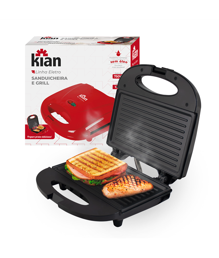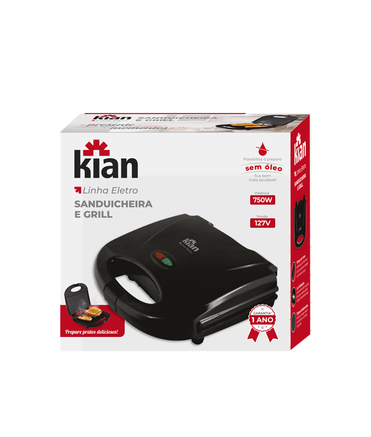 Desfrute de uma experiência gastronômica superior com a Sanduicheira e Grill 750W da Kian. Seja você um cozinheiro iniciante ou um chef experiente, este aparelho é a ferramenta ideal para elevar suas habilidades culinárias. Surpreenda sua família e amigos com pratos deliciosos e saudáveis, preparados com rapidez e facilidade. Transforme cada refeição em um momento especial com este elegante e eficiente grill.
