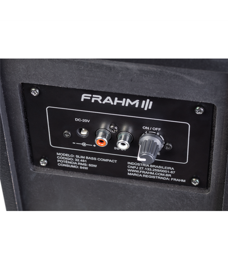 Conteúdo da Embalagem 01 Subwoofer Slim Bass Compact 01 Fonte DC 20V *4 Ohms 01 Manual de instruções