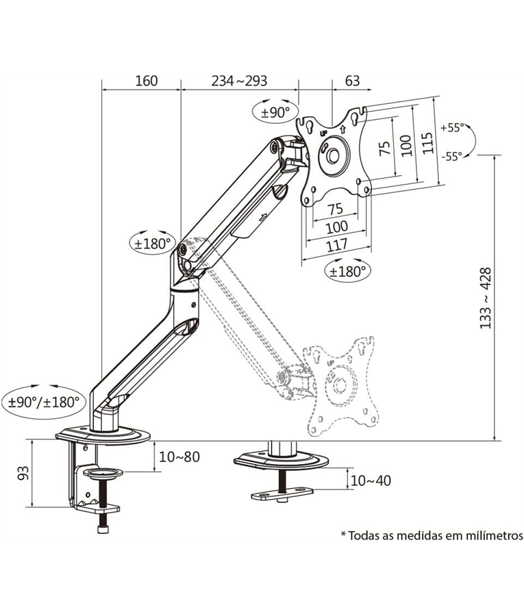 Descrição: Suporte Para Monitor Articulado com Mola 17 à 35 Polegadas