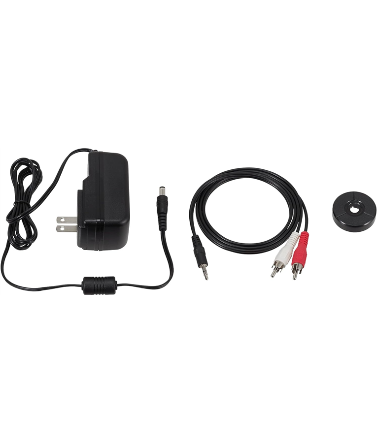 Acessório incluídos: Capa protetora contra poeira, feltro, prato (com correia de transmissão), adaptador de 45 RPM, cabo de áudio RCA (aprox. 1,2 m), adaptador AC (aprox. 1,5 m) Adaptador AC: 12 V, 2 A Agulha de reposição: ATN3600L